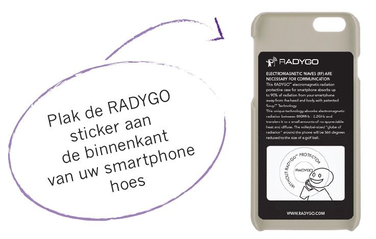 De RADYGO stralingsreducerende sticker is exact dezelfde technologie als de huidige RADYGO cases, met als voordeel dat deze sticker in bijna elk smartphone hoesje te plakken is.